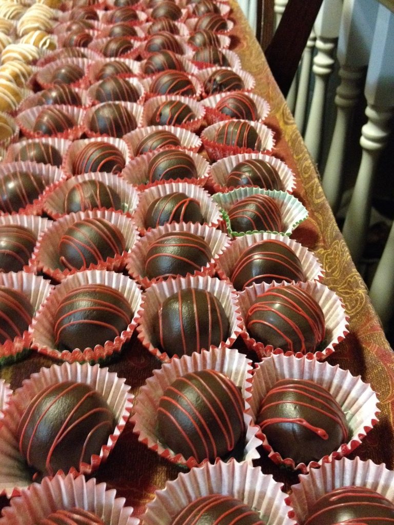 - Form the mixture into 1 inch balls. Roll each ball in the remaining cup of powdered sugar. Set the balls on a cookie sheet and refrigerate until firm.