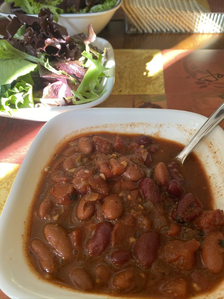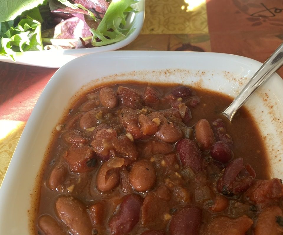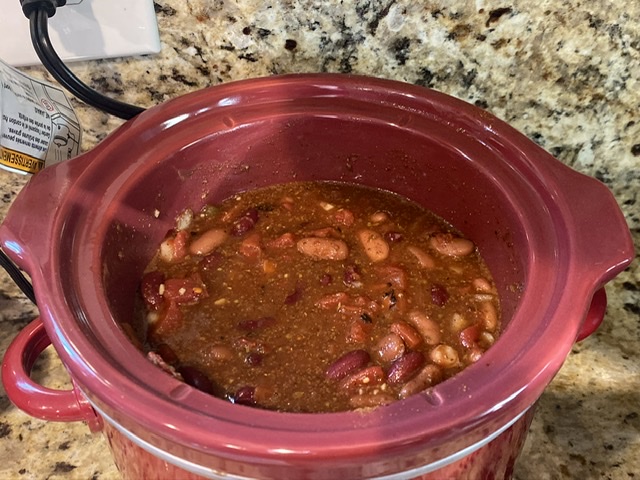 My favorite thing about this recipe is that it doesn’t require a lot of special ingredients…. I almost always have cans of beans and tomatoes in the cupboard, and the necessary spices in the pantry. If I happen to have carrots or peppers on hand I’ll toss them in, but it is just as good without. It makes the perfect “easy meal“ on snowy days, and making it in a small crock pot is super quick to throw together and just as quick and easy to clean up afterwards.