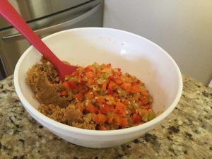 I love all the veggies that are in this loaf… the original recipe called for carrots, onions, and celery…but I’ve found that if you have any red pepper on hand, it also makes a great addition in the loaf!