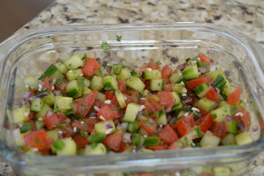 - Add several Tablespoons of Cucumber Salsa on top of the greens.