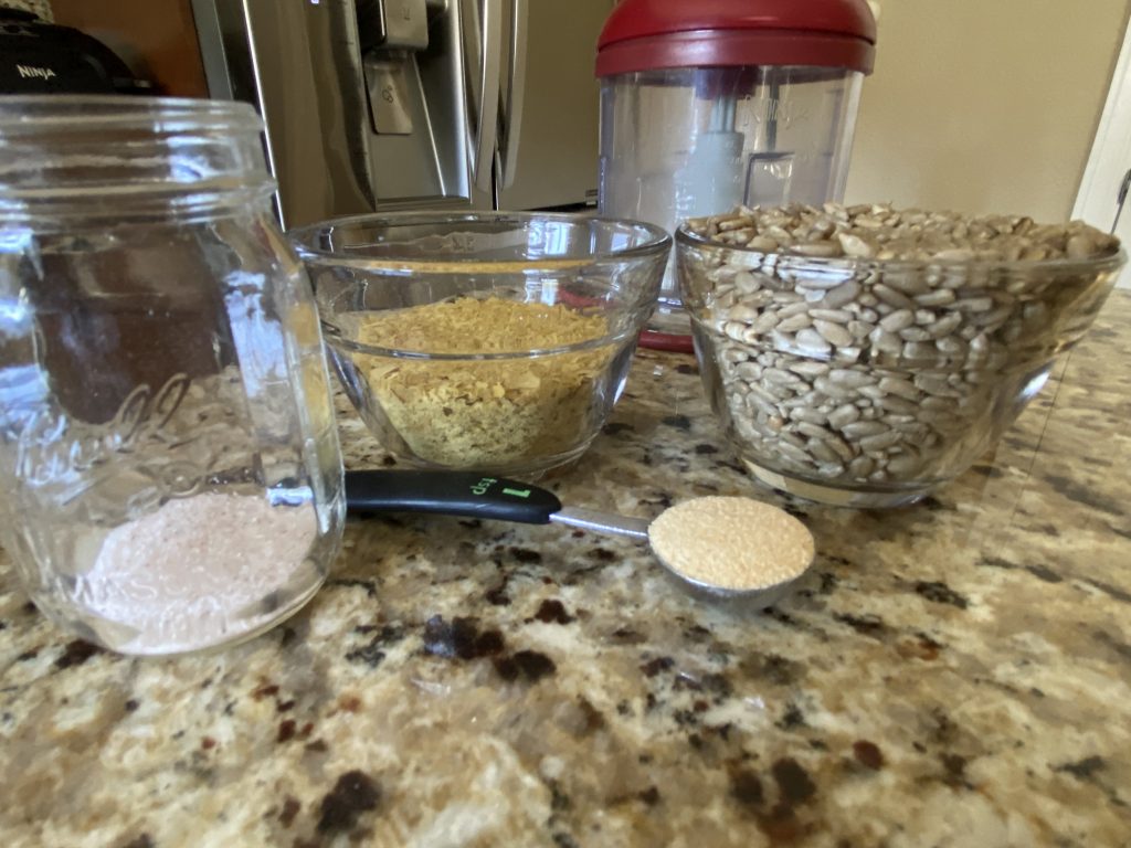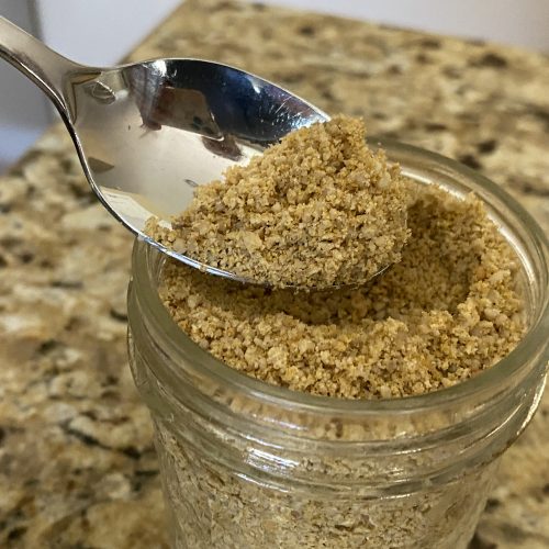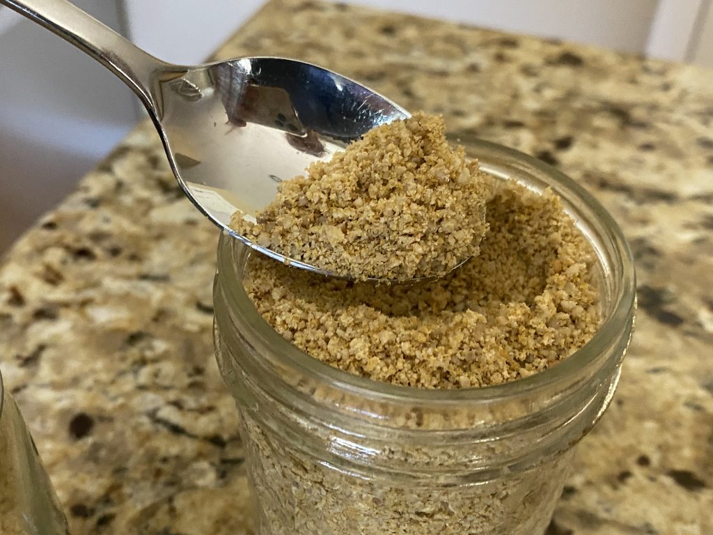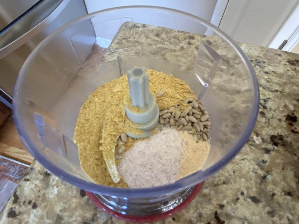 This is an easy, quick, dairy-free, and nut free substitute for parmesan cheese. I use this Parmesan as a topping on spaghetti, vegan Mac & Cheese, soups, and salads. I also sprinkle it over popcorn. There are so many uses for this topping, and I manage to go through it embarrassingly fast. 😁